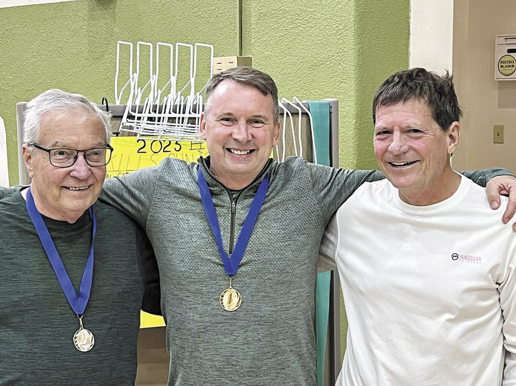 Left to right: Peter Hollatz (runner-up), Gary Wolf (champion), Marty Handel (chief referee)