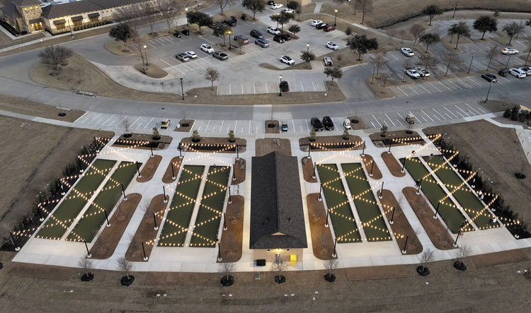 Bocce courts lit up in the evening (photo by Randy Hatcher)