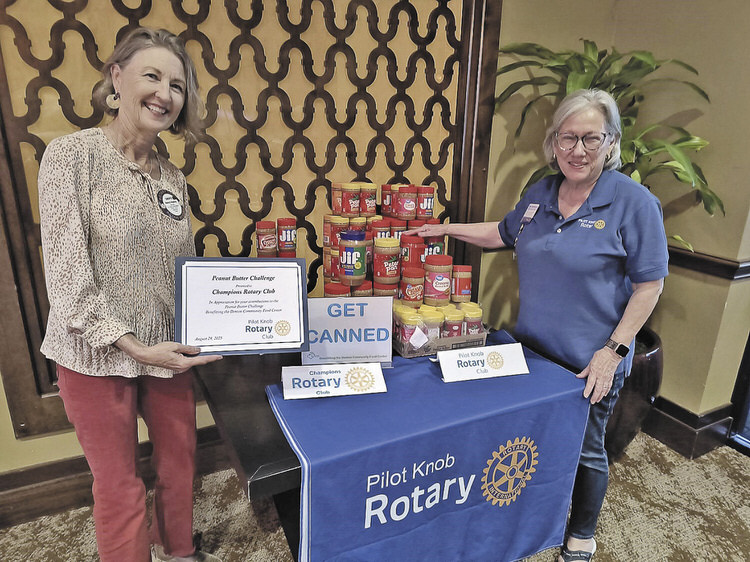 Thanks to Cheryl Hugley, president of Champions Club, and Mike Weaver of Pilot Knob Rotary for coordinating the event. The Champions Club meets on Wednesday mornings at 8 a.m. at the Mule Barn in Justin, and Pilot Knob Rotary Club meets on Fridays at noon at the Wildhorse Grill.