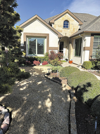 He suggests you have a “plan” for your yard. Build from a base of evergreens, which keep the yard lovely all year, and add plants with color as accents. Nandinas are a great example of evergreen plants that also add color. The Kanewskes have added rocks and sweeping curves to soften the straight lines of some shrubbery.