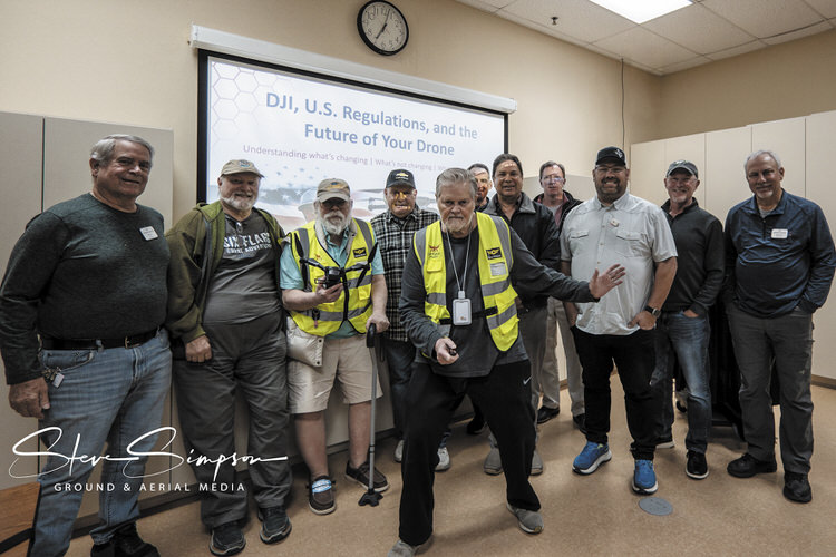 Meeting attendees with Drone Club President Steve Simpson (front center) and presenter Jared Janacek (front right) (photo by Steve Simpson)