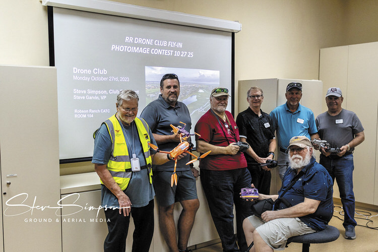 Attendees featured in this image were early arrivals and included Drone Club President Steve Simpson (far left) and VP Steve Garvin (second from the right). (Photo by Steve Simpson)