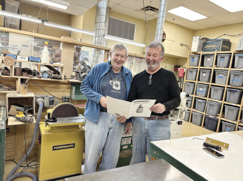 Recognition continued as beautifully designed coffee mugs, created by Kathy Dial, were presented to 39 woodworkers whose efforts were essential to the shop’s success. These included members who monitored the shop more than 10 times during the year, served as instructors for machine and safety training, led project classes and participated in maintenance and blow-down days throughout the year.