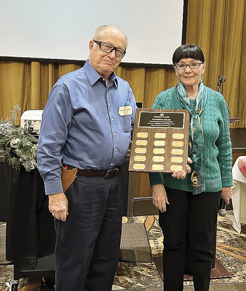 Newly elected 2026 President Dave Popejoy then took the microphone to thank the outgoing board of directors, Steve Russell, Susan Wells, and Teresa McGill, with special recognition for Kathy Dial’s leadership and dedication during her tenure. On behalf of the members, Dave presented Kathy with a bouquet of flowers and a heartfelt gift in appreciation for her service.